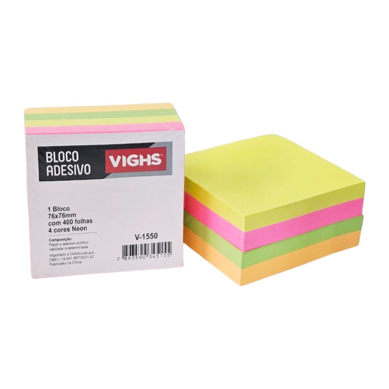 Bloco Adesivo 76x76 Cores Neon 400 Folhas 98 Vighs - UN