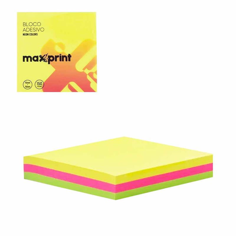 Bloco Adesivo 76x76 Neon com 3 Cores 150 Folhas 1691 Maxprint - UN
