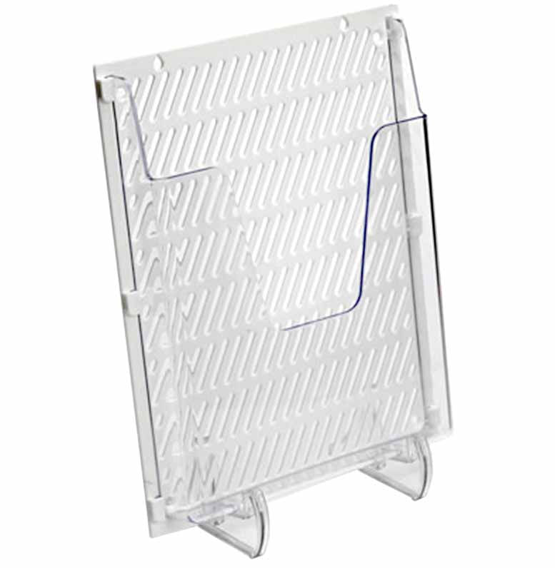 Este expositor multifuncional para escritório é equipado com fita dupla face e um pedestal, tornando-o versátil e adequado para uso em praticamente qualquer ambiente. Ele é especialmente projetado para apresentar informações de maneira simples e esteticamente agradável. Seu design inclui cantos arredondados e uma abertura superior em forma de meia-lua, tornando-o fácil de manusear e ideal para exibir documentos, folhetos e materiais informativos de forma organizada e atrativa.