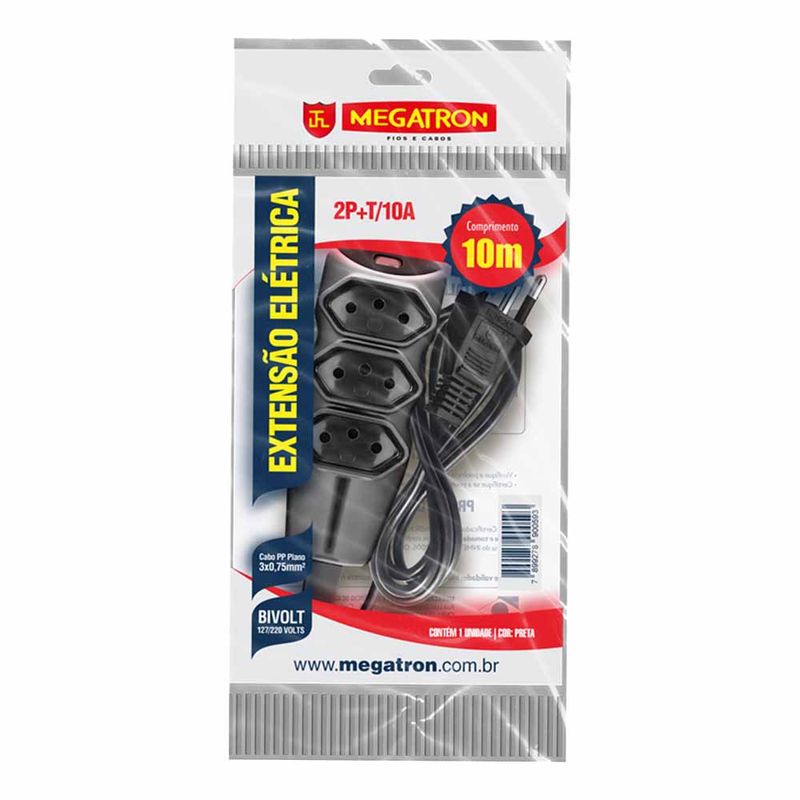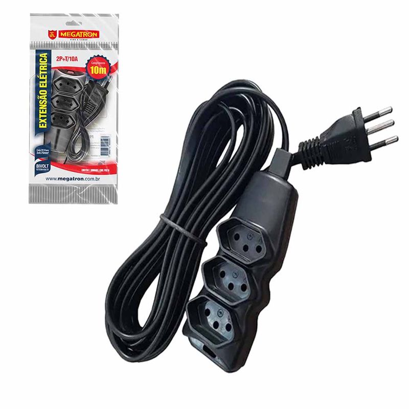 Extensão com três tomadas para aparelhos elétricos e eletrodomésticos! Possui dez metros de comprimento e permite conectar até 3 equipamentos simultaneamente, podendo ser usado atrás de móveis ou sendo um item para suas viagens. Ideal para equipamentos elétricos como furadeira, máquina de lavar, vídeo games, aspirador de pó, cortador de grama, aparadores, carregadores de bateria, entre outros.