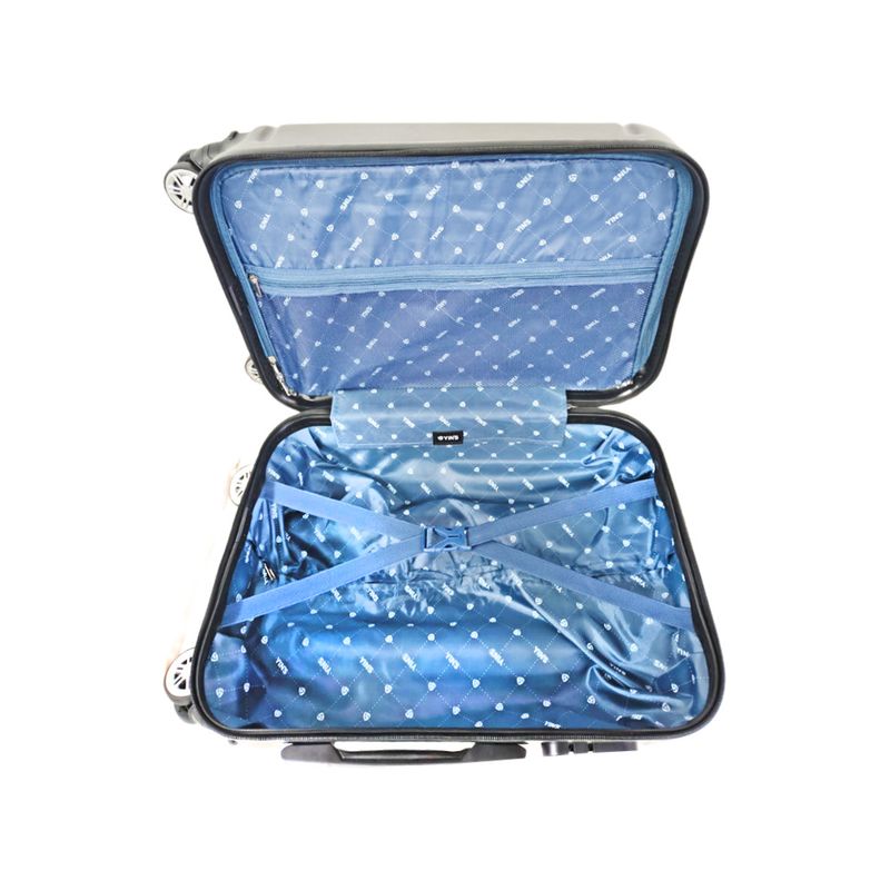 Viaje com segurança e estilo com a Mala de Bordo P. Feita em ABS rígido, é ideal para longas viagens e conta com puxador em alumínio reforçado com logo personalizado. Suas 4 rodinhas giram em 360º para fácil movimentação, e o interior oferece forro com elástico, fundo falso e fecho com trava de zíper e cadeado segredo, garantindo proteção extra para suas roupas e acessórios.
