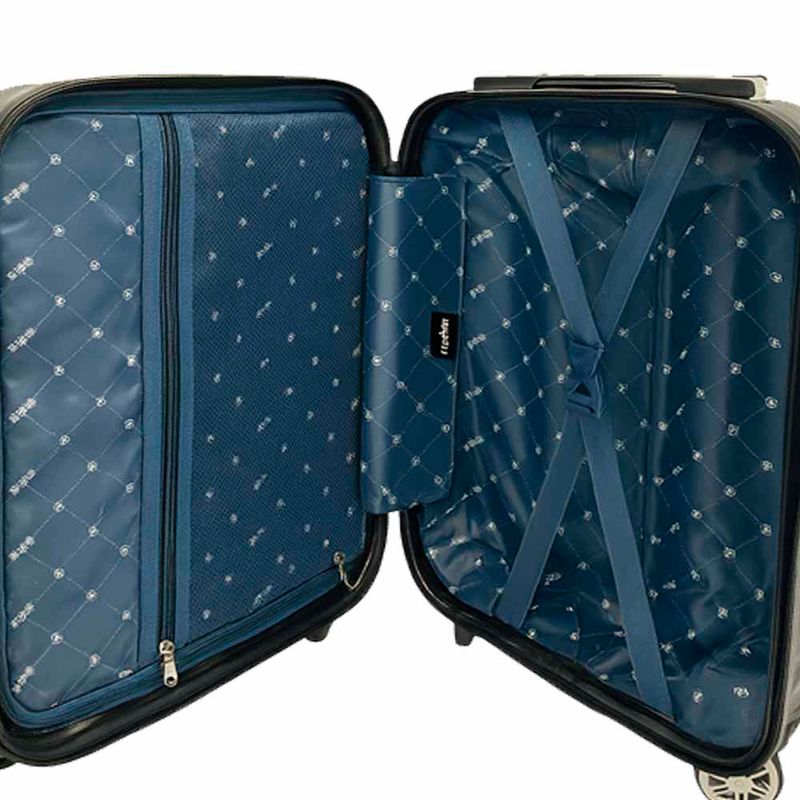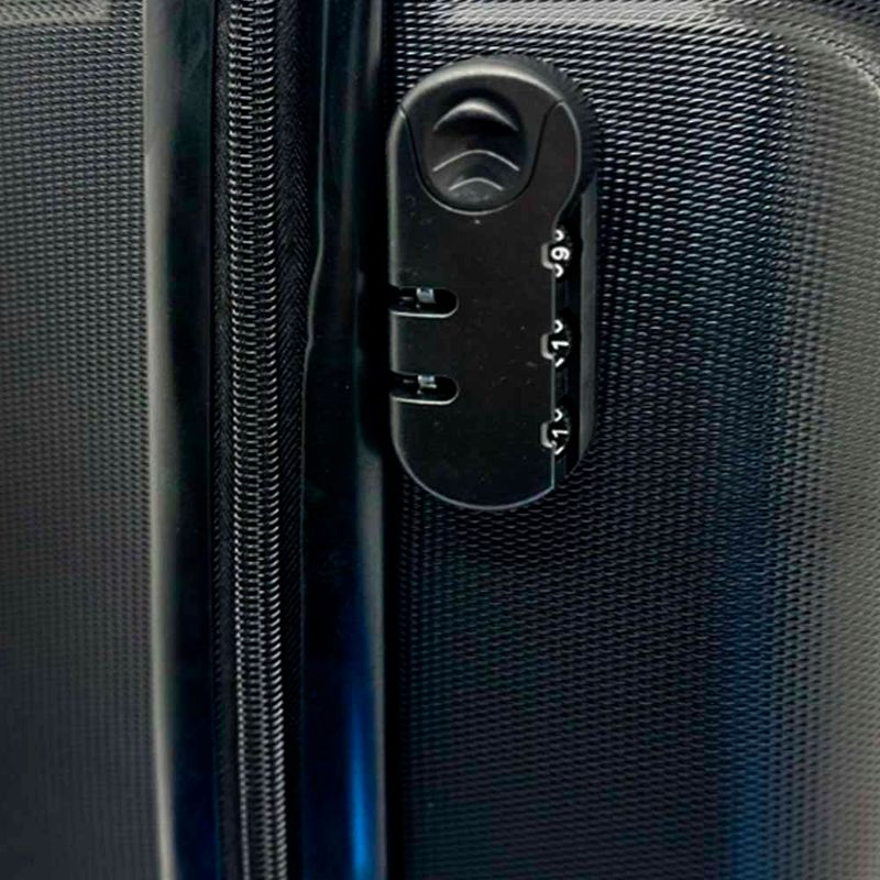 Viaje com segurança e sofisticação! Esta mala de viagem é fabricada em ABS rígido para suportar longas viagens. Possui puxador em alumínio reforçado com logo personalizada. 4 rodinhas que giram em 360º, facilitando a locomoção. Na parte interior contém forro interno com elástico e fundo falso para fixação de roupas e acessórios, além de fecho com trava de zíper e cadeado segredo para maior segurança em sua viagem.