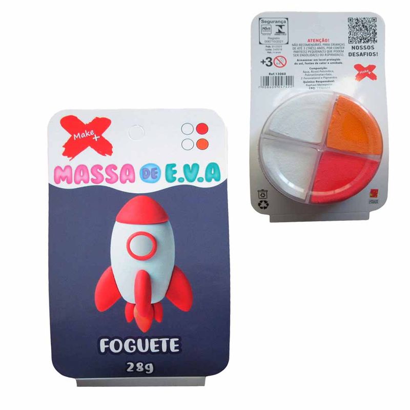 A Massa EVA para Artes 28g com 4 Cores Foguete é diversão garantida para os pequenos exploradores da criatividade. Com quatro cores vibrantes e tema de Foguete, estimula a imaginação e o desenvolvimento motor. A massa é macia, fácil de modelar e não faz sujeira. Ideal para atividades escolares, recreativas e projetos artesanais. Perfeita para criar momentos educativos e lúdicos.