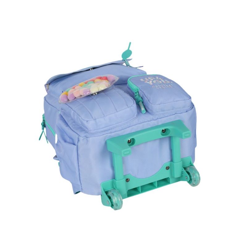 A Mochila de Rodinhas é o complemento perfeito para atender às suas necessidades diárias! Equipada com rodinhas resistentes, facilita o transporte, enquanto os compartimentos espaçosos oferecem espaço para livros, cadernos, lanches e outros itens essenciais. Seu design encantador adiciona um toque de estilo, tornando-a ainda mais atrativa. Uma escolha prática e encantadora para tornar a jornada escolar uma experiência alegre e empolgante.