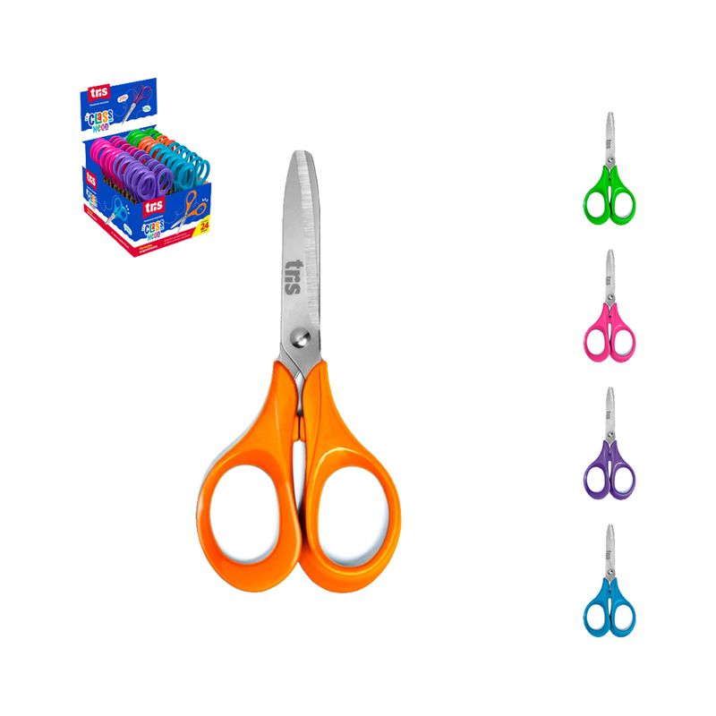 A Tesoura Escolar Class Neon de 13cm possui lâminas com espessura de 1.5mm, garantindo cortes precisos e seguros. O cabo em ABS de alto brilho oferece durabilidade e um design moderno, além de proporcionar conforto durante o uso. Ideal para atividades escolares e artesanais.